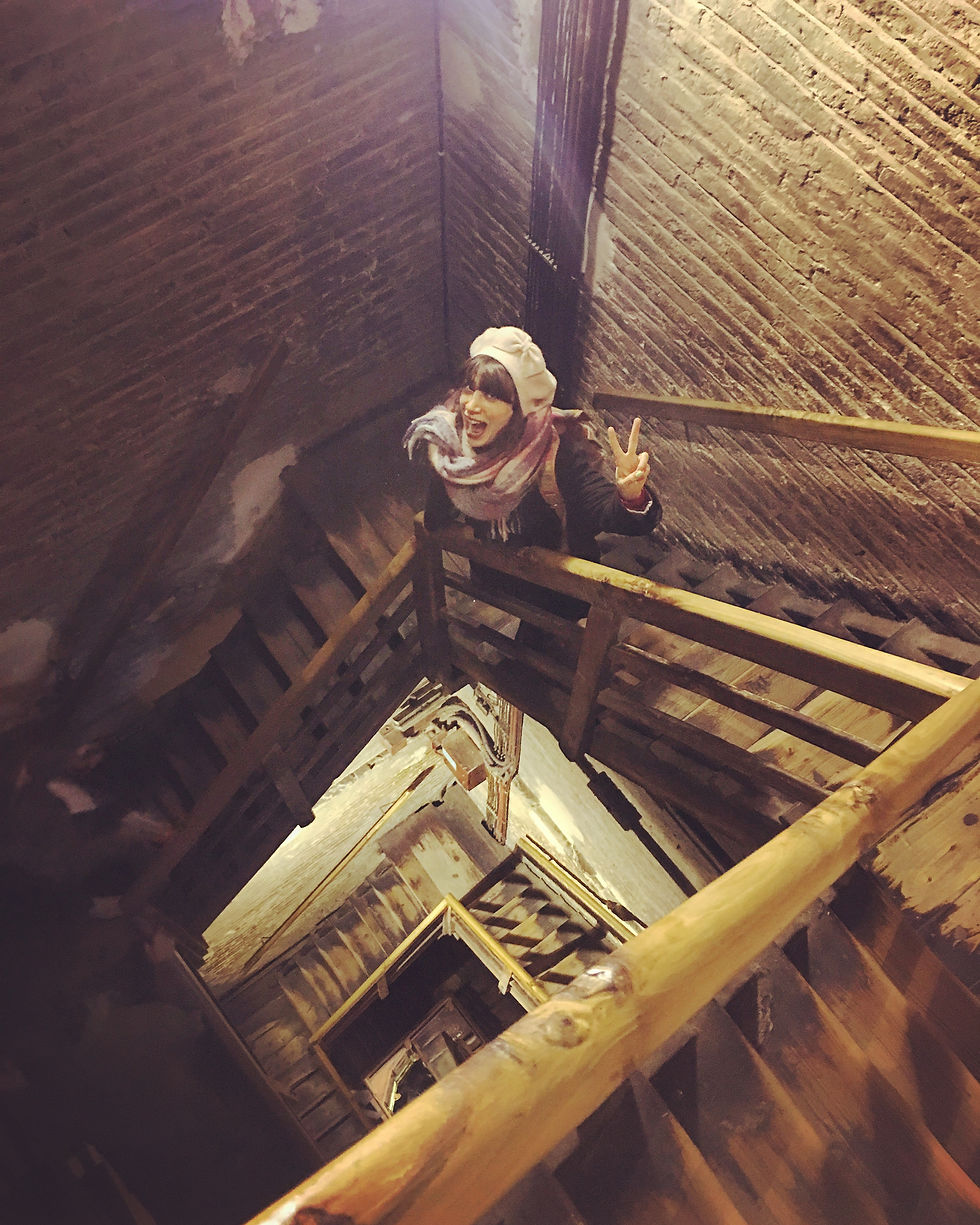 Burada iyice tıkındıktan sonra biraz daha şehir turu attık ama soğuktan burnumuzun ucu düşünce önce eve uğrayıp bir kat daha sardık kendimizi. Sonra biz Can'la yeniden çıktık çünkü önümüzde bizi bekleyen tam 498 adet basamak vardı. Şöyle ki; şehrin sembolü olan Torre Asinelli ve Torre Garisenda adlı iki adet kule var ve bunlardan Asinelli olanına çıkılabiliyor. Tabi 498 zorlu basamağı göze alabilirsen. Biz aldık, herkesin de almasını tavsiye ediyoruz. Basamaklar oldukça dar ve çıktıkça o kadar bitmiyor ki, bazı anlarda acaba sonsuza kadar mı sürecek hissi uyandırıyor. Ama bitiyor ve tepeye ulaşınca harika kızıl Bolonya manzarası sizi karşılıyor. Biz çıktığımız saat açısından da çok şanslıydık, çünkü akşam saat 5'te çıktığımız için hem gündüz manzarasını yakaladık, hem de bir süre sonra hava kararmaya başladı ve akşam manzarasını da görmüş olduk.